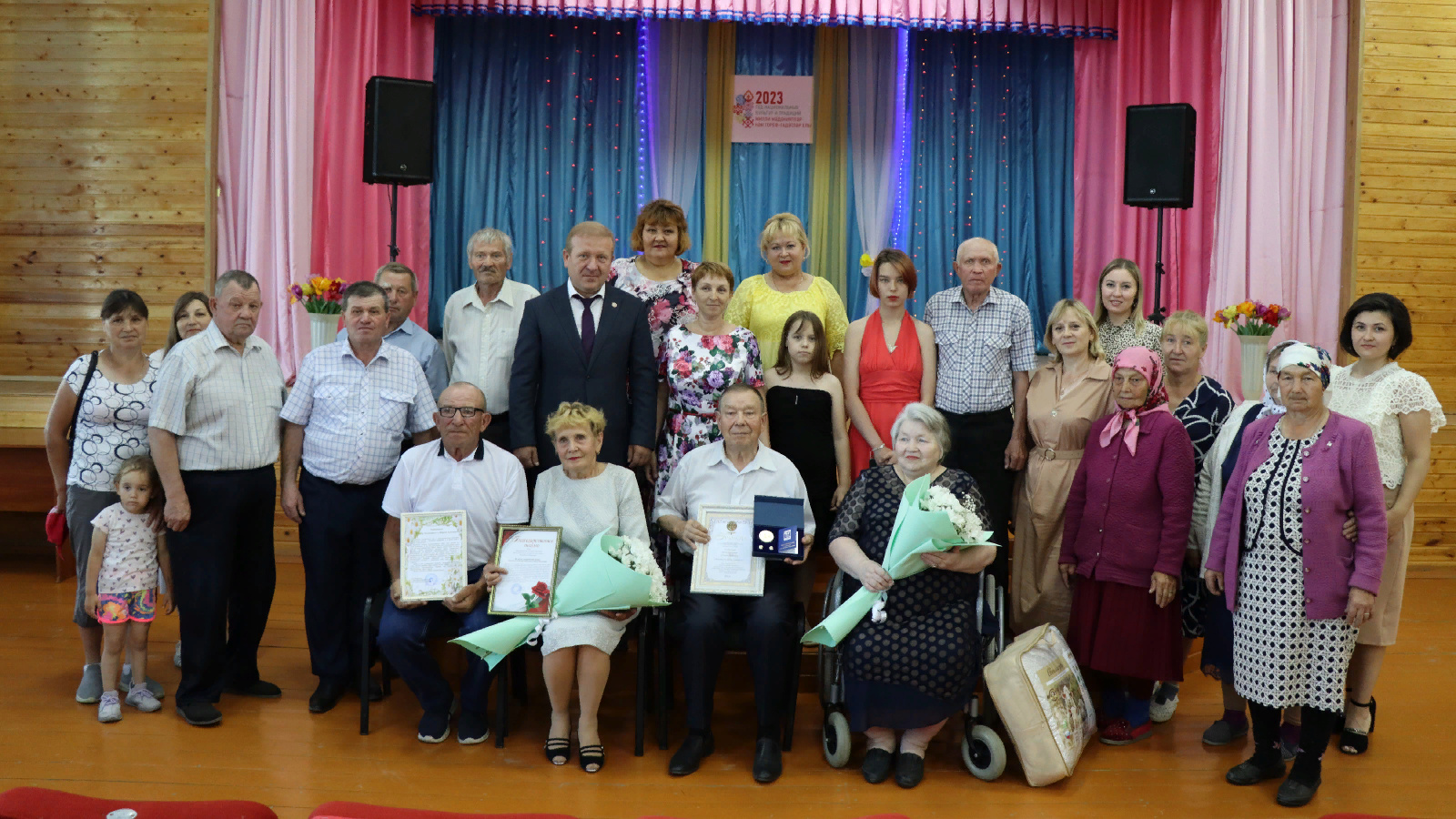 Авыл җирлеге башлыгы Николай Усмендеев та үз чыгышында күркәм гаиләләргә хөрмәтен белдереп, котлады. Авыл мәдәният йорты хезмәткәрләре үзләренең җыр-моңнарын бүләк иттеләр.