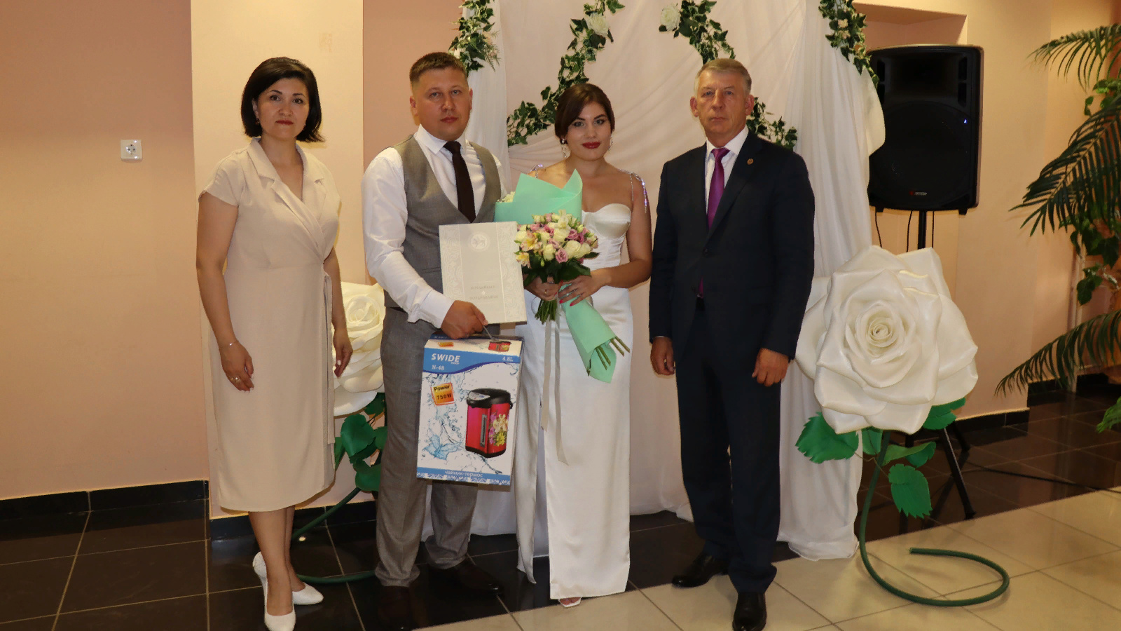 Гаилә, мәхәббәт һәм тугрылык көнендә Чүпрәле районы ЗАГС бүлегендә яшь парлар Надежда Гаврилова белән Владимир Григорьевның никахларын тантаналы рәвештә теркәделәр.