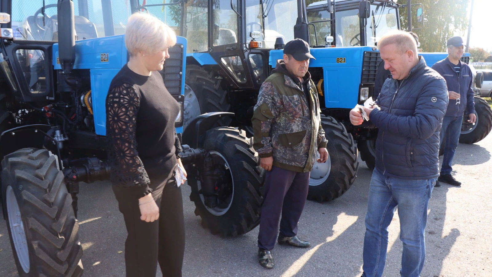 ТР Чүпрәле районы башлыгы Марат Гафаров, бүген, 2023 елның 15 сентябрендә, тантаналы рәвештә авыл җирлекләре башлыкларына яңа трактор ачкычларын тапшырды.