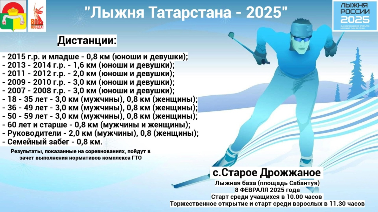 Ярышларда күрсәтелгән нәтиҗәләр "Хезмәткә һәм оборонага әзер" комплексы нормативларын үтәү исәбенә керәчәк.