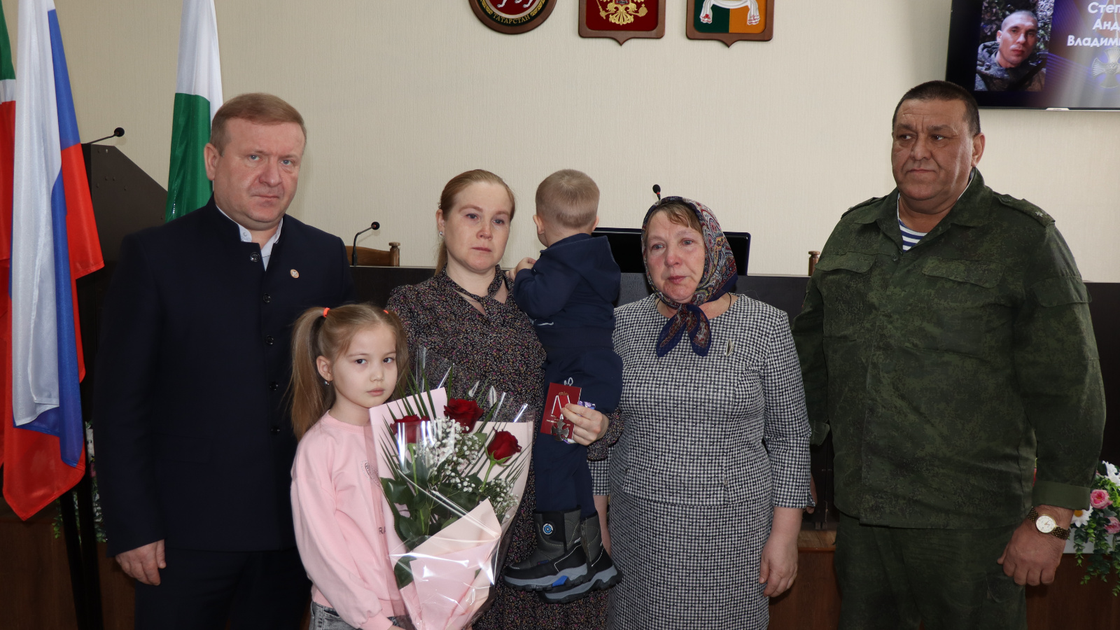 Тантаналы шартларда әниләренә һәм якыннарына Батырлык орденнары (үлгәннән соң) тапшырылды.