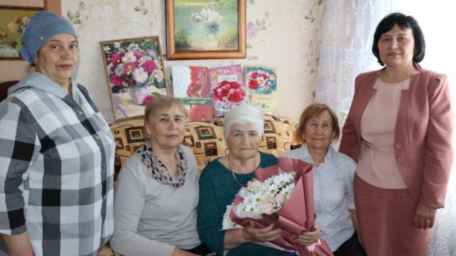 Тәбрикләүчеләр арасында мәктәп директоры Лилия Насыйбуллина, аның хезмәттәше Клара Насретдинова, ветераннар советы рәисе Роза Насыйбуллина һәм аның укучысы Нәфисә Усманова да бар иде.