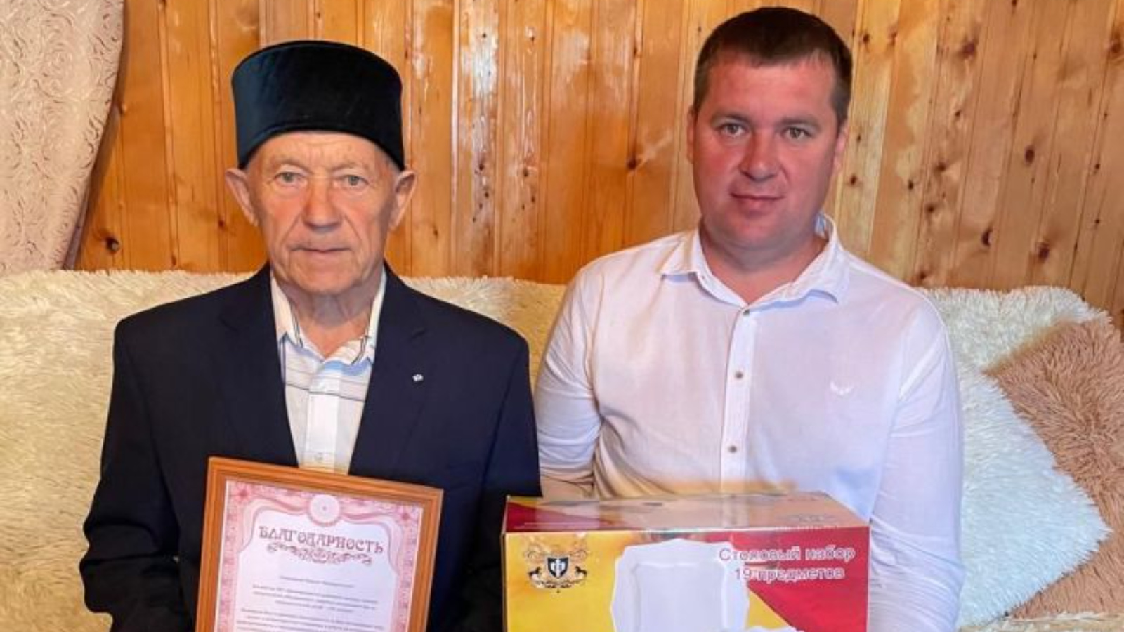 Рәсим Низамов шәхсән үз исеменнән һәм бөтен коллектив исеменнән хезмәт ветеранын юбилее белән котлады һәм аңа Рәхмәт хаты һәм бүләкләр тапшырды.